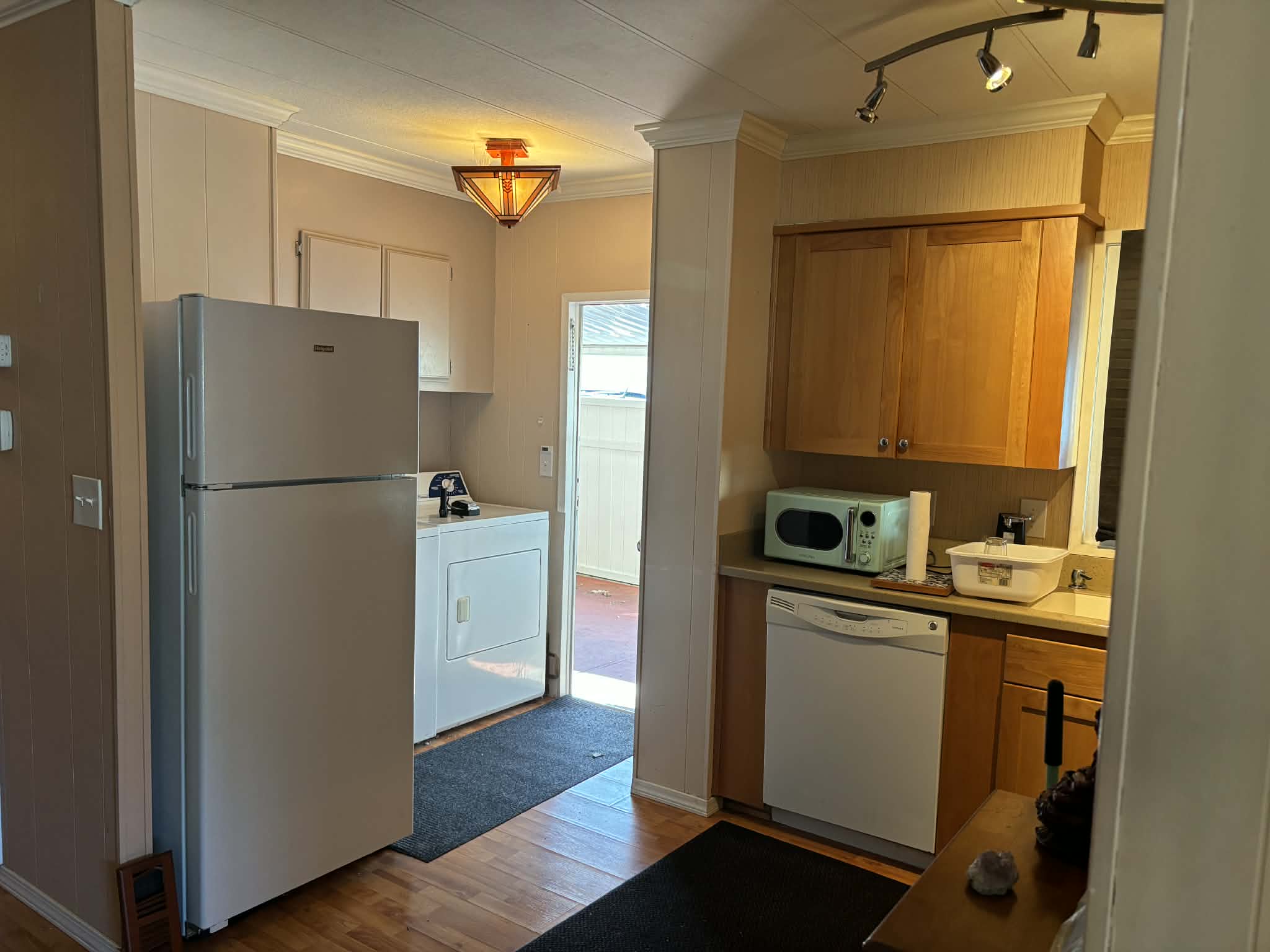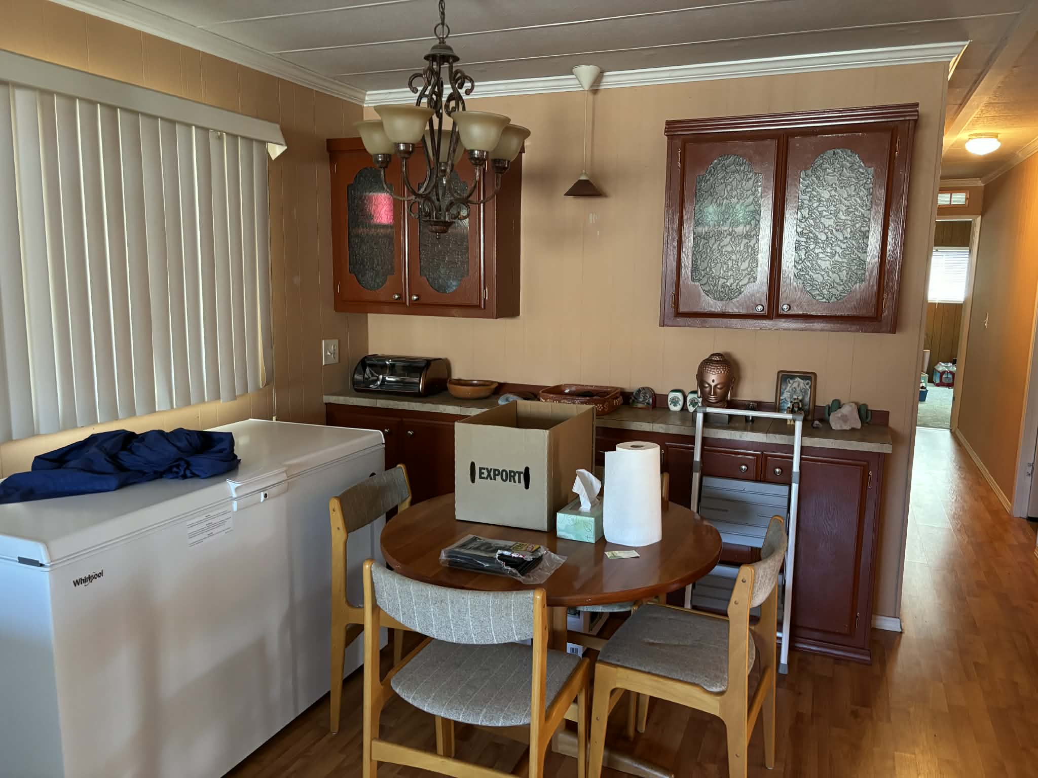 Inside, you’ll find thoughtful updates throughout. The kitchen, guest bathroom, and primary bathroom have all been refreshed with newer cabinetry, countertops, and brand-new fixtures. Laminate flooring runs through the dining room, kitchen, and hallway, and crown molding adds an elegant touch throughout most of the home.