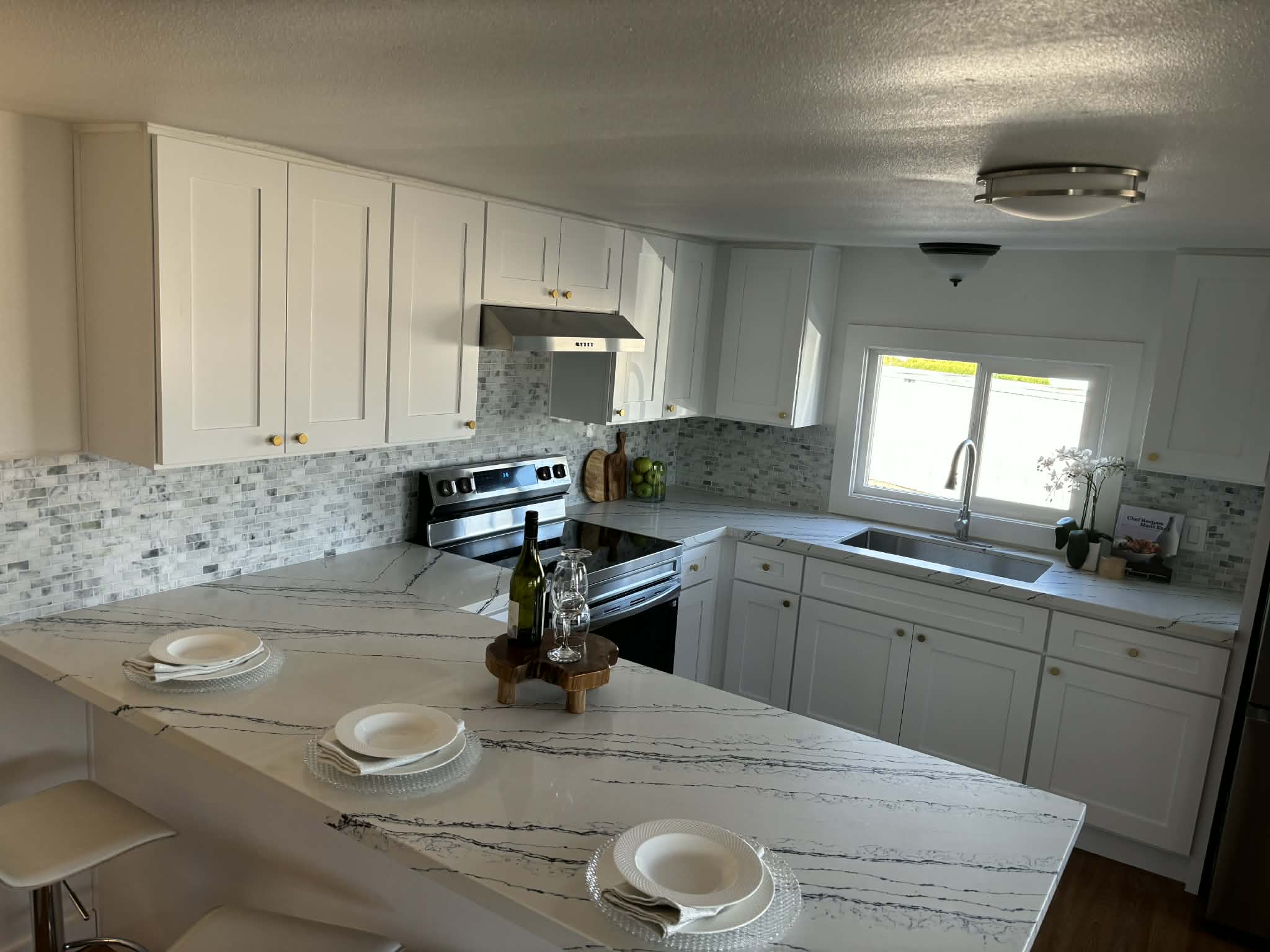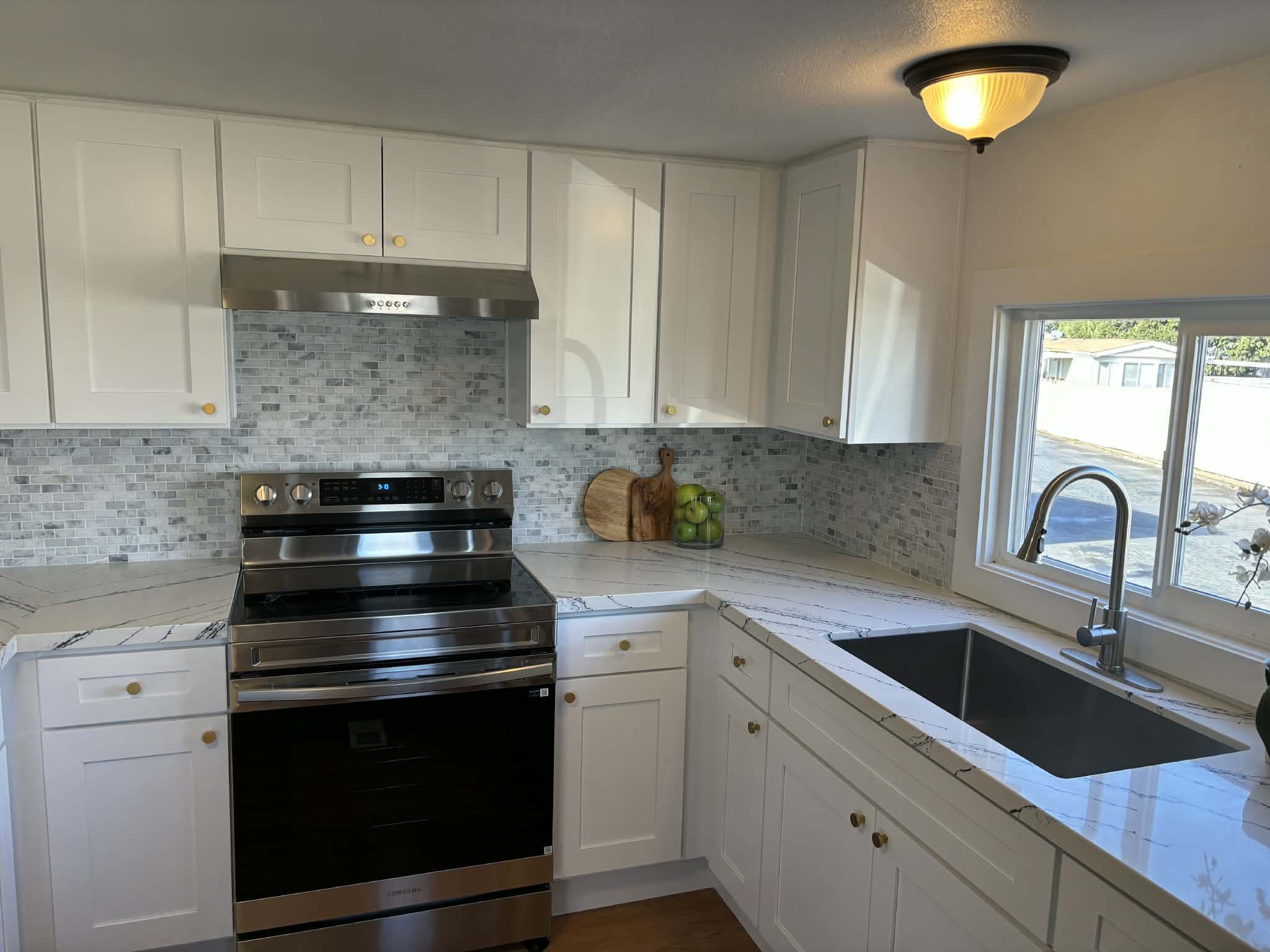 Step into elegance with this fully remodeled home, perfect for anyone looking to downsize without sacrificing style or comfort in this senior park (ages 55 and older). This charming 1 bedroom, 1 bath mobile home features a stunning brand-new kitchen designed with an English-inspired touch, complete with soft-close cabinets and drawers, gorgeous granite countertops, and abundant storage for all your cooking needs. New oven and refrigerator included!